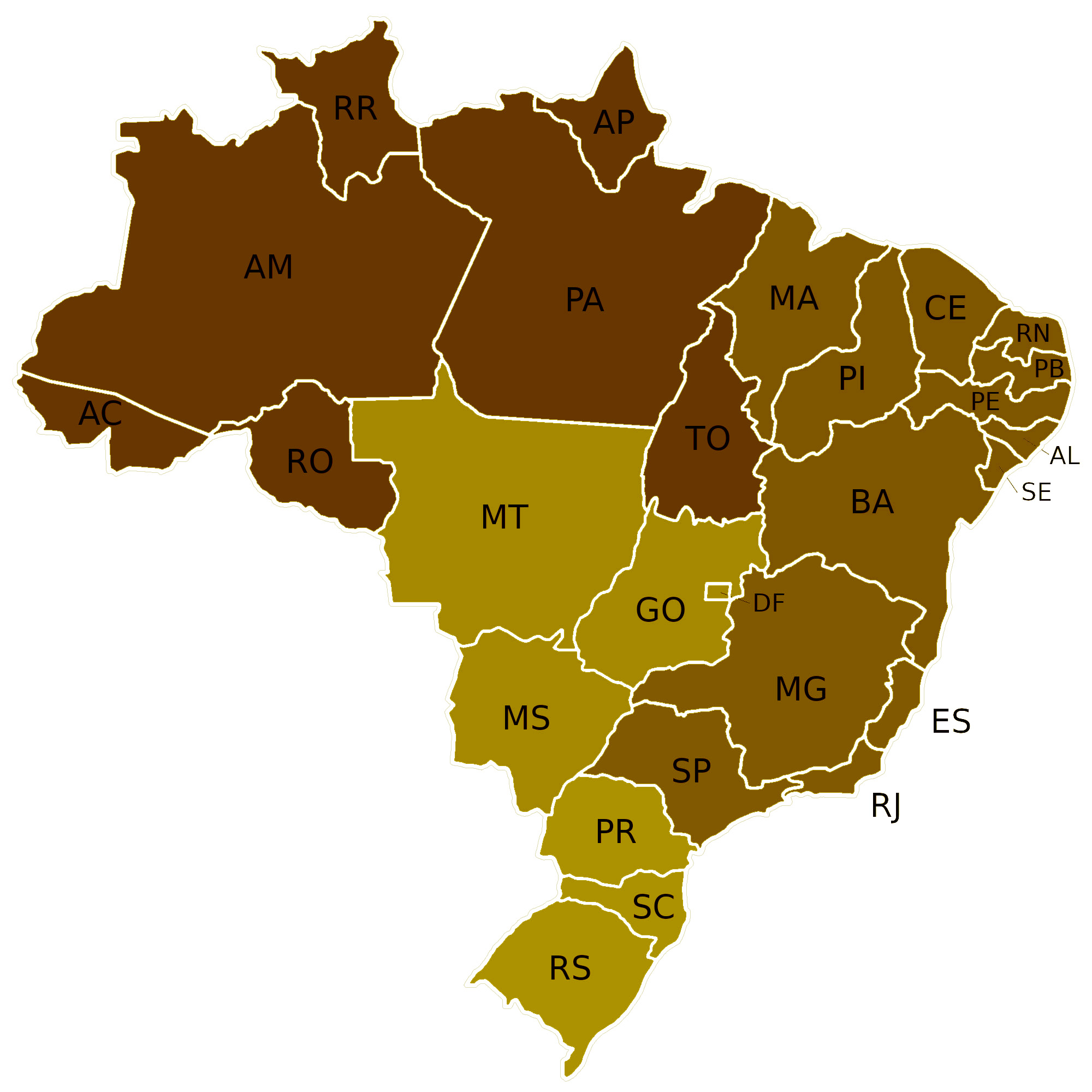Contamos com uma presença mais forte nos estados de Minas Gerais, São Paulo, Rondônia, Goiás e Santa Catarina.